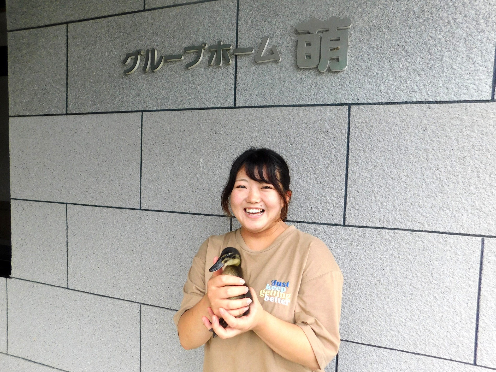 仕事で大切にしているのは、ご利用者を笑顔にできる行動をすること。毎日をただ何もせず過ごすのではなく、ご利用者が意欲的に取り組めることを見つけ出し、それを通して楽しく過ごしていただきたいと思っています。